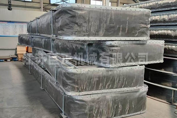 文中所展示的圖片是我們江蘇巨正機械有限公司近期正在為湖北客戶制作的一批矩形非金屬補償器(矩形非金屬膨脹節)。非金屬補償器通常由纖維織物蒙皮(硅膠為紅色、氟膠為黑色)與管道接口形狀相同的金屬框架、以及其它的結構件所組成。